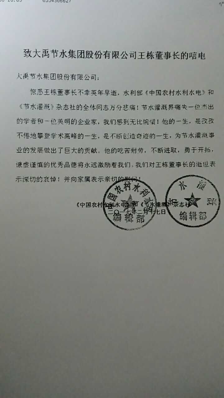 《中国农村水利水电》及《节水灌溉》编辑部唁电