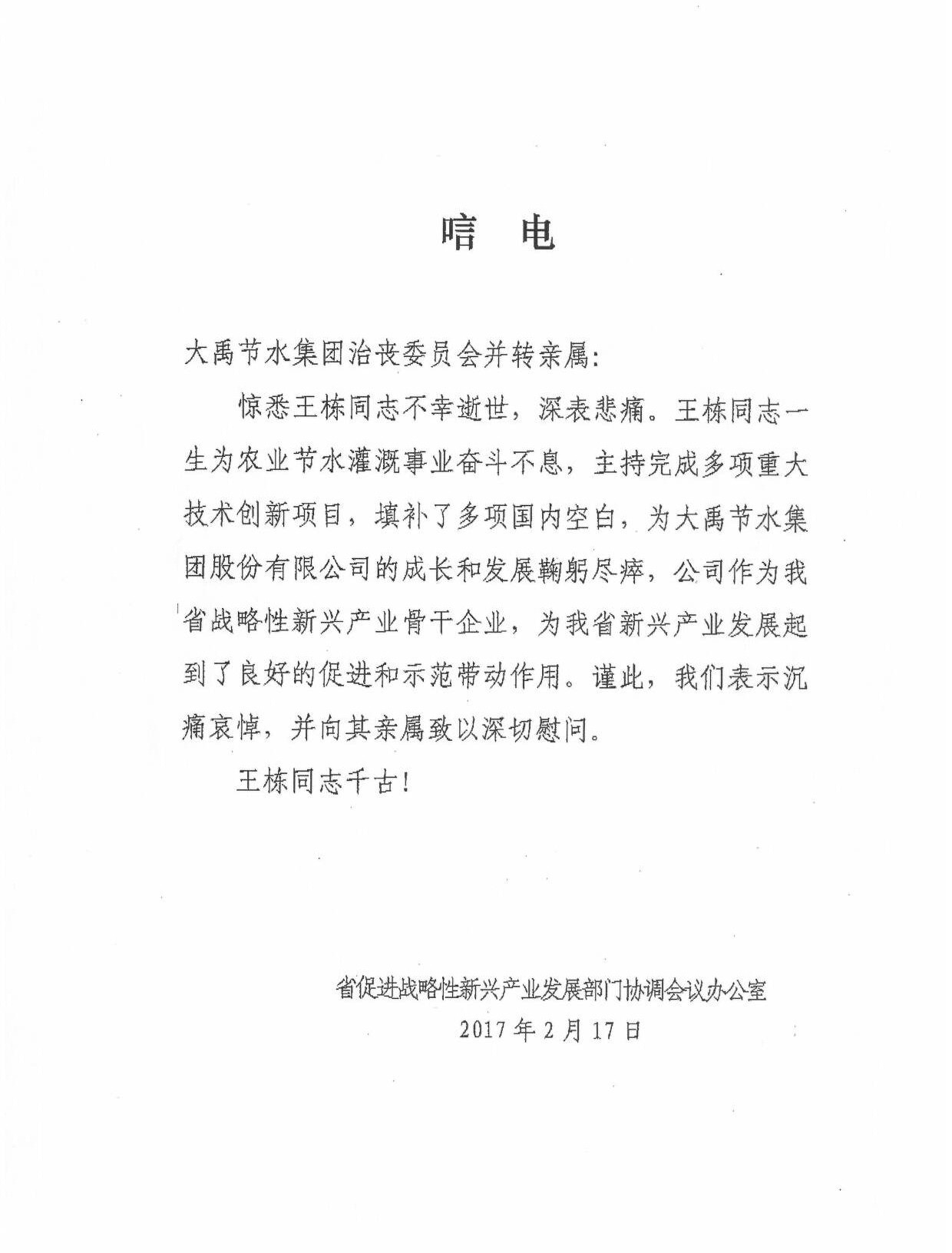 甘肃省促进战略性新兴产业发展部门协调会议办公室唁电