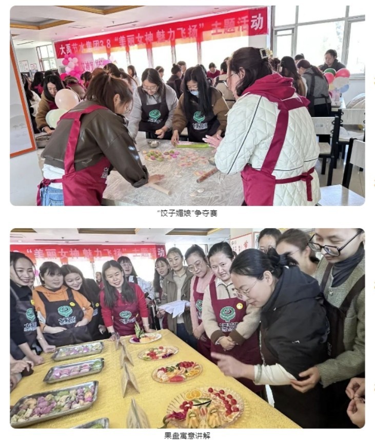 3月8日,大禹节水集团驻酒泉、天津等板块、公司共计600余位女性员工参与创意包饺子活动。本次活动公司为各位女神们精心准备了颜色各异的面团、健康营养的饺子馅、各式各样的水果食材、定制的围裙、温馨的祝福、浪漫的花朵和贴心的礼物,为节日增添了无限的惊喜和欢乐。
