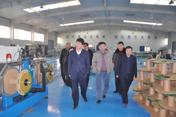 甘肃省证监局副局长鱼向东先生、上市处韩小玉女士在集团公司副董事长王冲、董事会秘书王光敏及天津公司总经理张学双的陪同下在大禹节水(天津)有限公司滴灌车间参观考察