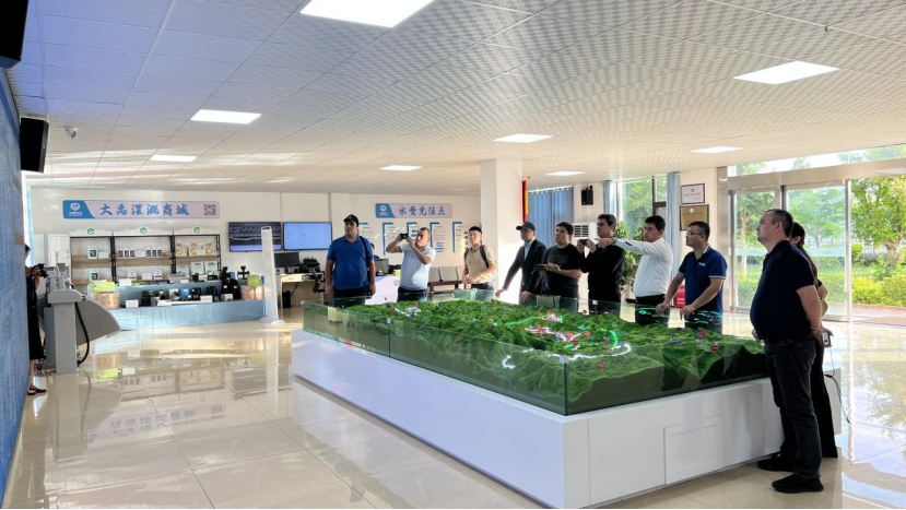 代表团首先参观了大禹节水北京研发中心。在大禹慧图智能制造展区,制造事业部总经理李昌锋着重介绍了测控一体闸门等硬件设备的功能及使用场景。