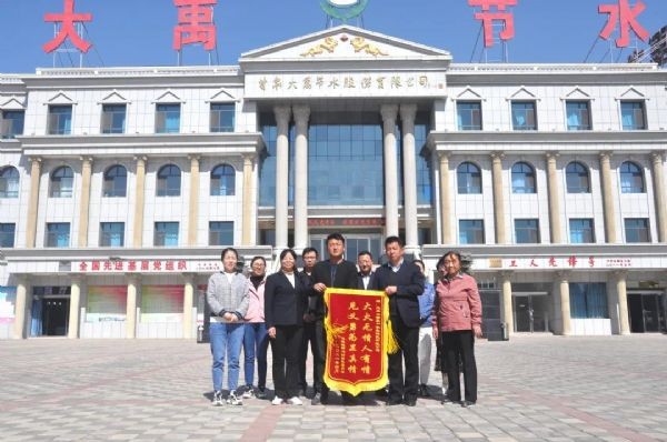 肃州区三墩镇仰沟村胡书记向大禹节水赠送旌旗