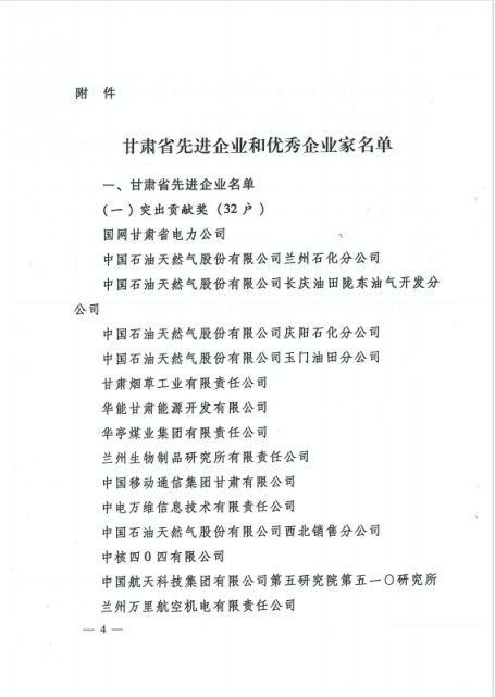 甘肃省先进企业和优秀企业家推荐评选工作按照自下而上、逐级推荐、差额评选、民主择优的方式,经省先进企业和优秀企业家评审委员会评审,省先进企业和优秀企业家评选表彰活动领导小组审核,省政府常务会议审议,表彰了包括大禹节水在内的32户企业为甘肃省先进企业突出贡献奖获得者,同时表彰了包括集团董事长王浩宇在内的56名同志为甘肃省优秀企业家。