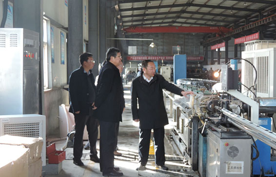 武威市委常委、副市长张柯兵一行在公司生产车间了解滴灌管(带)生产工艺
