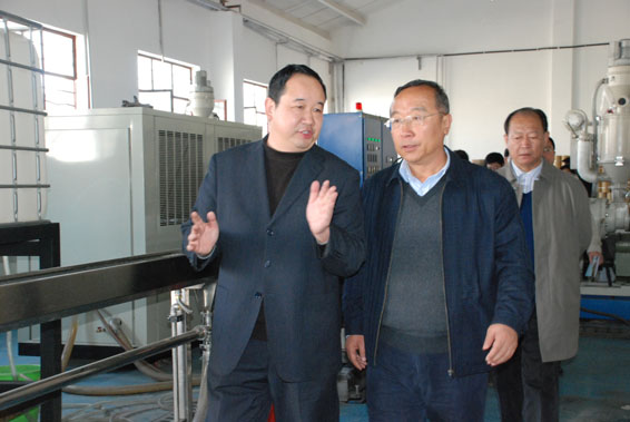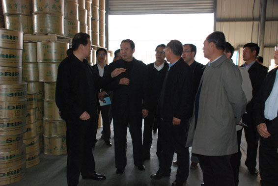 在集团公司董事长王栋的陪同下栗震亚分别来到了滴灌带生产车间、过滤器生产车间、注塑车间详细了解情况。栗震亚副主席对生产过程进行了详细了解,董事长介绍了近年来公司的生产发展情况后,栗震亚副主席对我公司发挥的地方骨干企业辐射带动作用给予肯定,他还说,在节水农业方面,酒泉走在了全省乃至全国前列,大禹节水公司更是功不可没。节水农业有很广阔的发展空间,政府相关部门要给予大力支持。