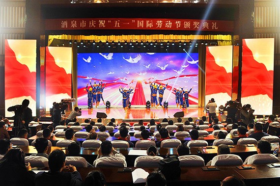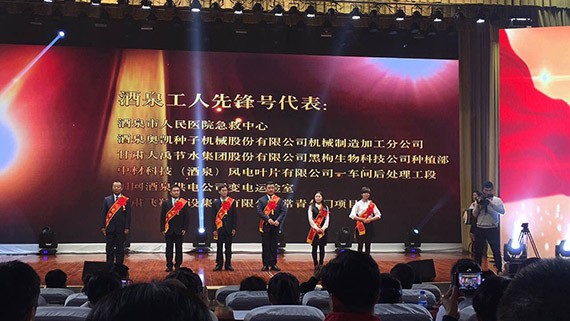 4月26日上午,酒泉市庆祝五一国际劳动节颁奖典礼在酒泉国际会展中心举行。来自全市各界的劳动者欢聚一堂,共同庆祝自己的节日。大禹节水黑枸生物科技公司种植部荣获酒泉市"工人先锋号"荣誉称号。