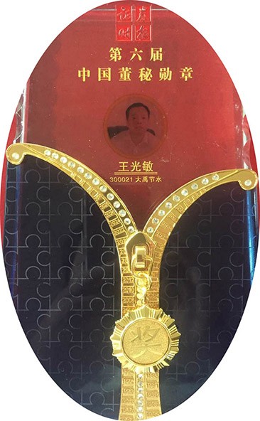 董秘勋章奖,荣耀归于投身资本市场、维护上市公司价值超过十年的优秀董秘。大禹节水集团董秘王光敏凭借20余年来在董秘岗位上的辛勤工作和为推动大禹节水集团稳步发展所取得的成绩,经过专家评审团和上市公司董秘、新闻媒体、机构投资者和个人投资者的积极投票选举,荣膺第六届"中国董秘勋章"奖。这不仅是对其个人多年工作的表扬与肯定,更是对公司管理团队在公司治理、信息披露、投资者关系管理等方面的充分肯定。