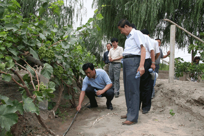 王晓东司长、康国玺厅长、王喜成市长一行参观葡萄紊流滴灌