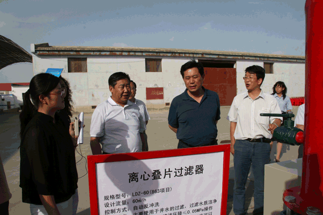 王晓东司长、康国玺厅长王喜成市长一行参观公司生产的过滤施肥产品