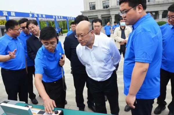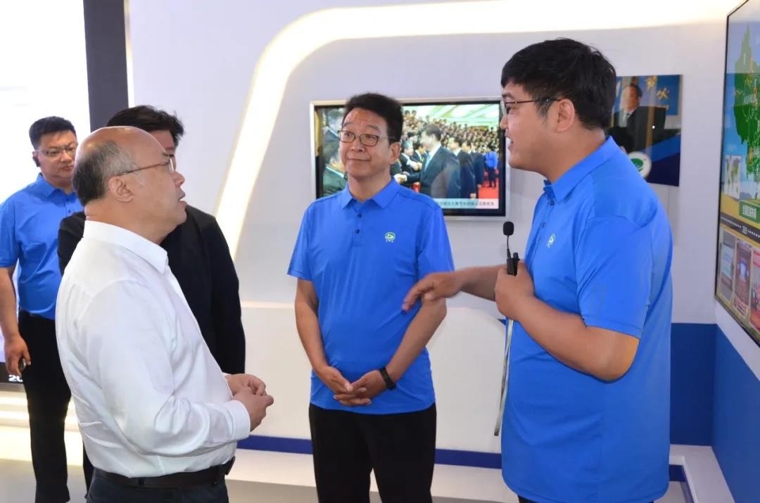 在大禹节水集团农村人居环境整治展示区域,王正谱一行等详细了解了农村污水处理的各类产品、工艺原理、污泥脱水车、管道清洗车、管道机器人等各类专业化、智能化运维工具设备以及负责线上线下运维管理的运营服务团队;充分展现了公司核心工艺技术、研发装备制造能力和智慧运维服务能力。