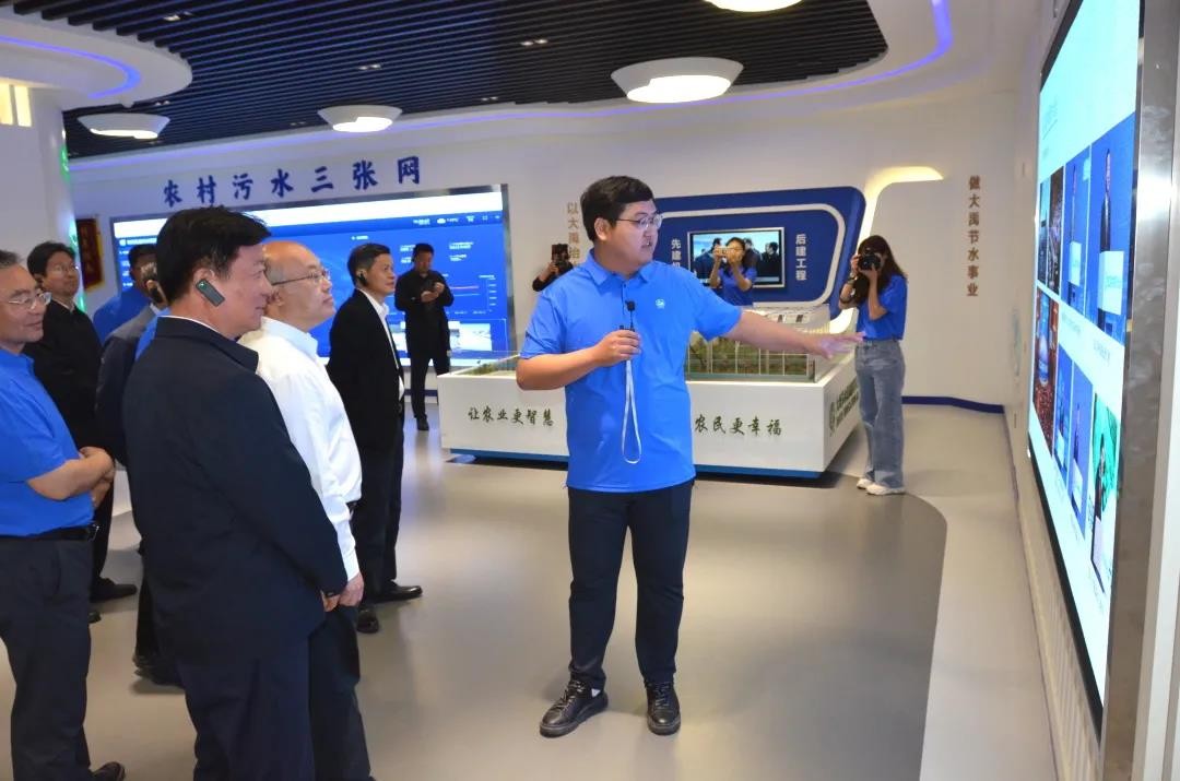 王正谱一行参观了武清区农村生活污水处理项目调度中心、水质检测室,王浩宇重点指出智慧室、智慧信息终端产品室的高效节水灌溉智能化工程建设提供整体解决方案的智能水表、测控一体化闸门等硬件产品。其中智能水表已经成功应用到元谋县丙间灌区11.4万亩高效节水灌溉项目;测控一体化闸门完全由公司自主研发、拥有知识产权并成功应用到河北永定河洋河二灌区等多个项目,这些项目为当地获带来了良好的社会效益、经济效益、生态效益。