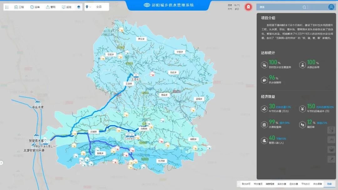 农民饮水:巩固脱贫攻坚成果,补足农村基础设施短板,“互联网+人饮”提升乡村生活品质,让农民更幸福——“大禹彭阳模式”。公司实施了宁夏回族自治区彭阳县农村饮水工程,从水源、泵站、蓄水池、管网到水龙头全链条实施了自动化、智能化改造,彻底解决了4.3万户19万人的农村饮水安全问题,走出了“互联网+农村供水”的“投、建、管、服”新模式。2019年9月,水利部在宁夏召开农村饮水安全工作推进会,与会领导一同深入彭阳县,现场观摩了农村饮水工程全域化规划、规范化建设、专业化管理、信息化服务、水费征收等情况,项目已在全国进行推广复制。