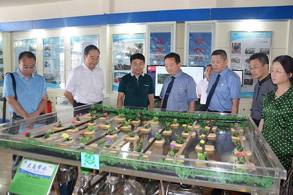 调研组一行在公司展厅滴灌系统模型前了解公司产品应用