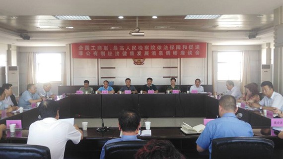 7月28日下午,最高人民检察院办公厅副处级助检员冯孝科、全国工商联法律部副部长王洪武、全国工商联法律部权益处主任科员张永利、甘肃省工商联工作部部长刘庆、甘肃省人民检察院预防处处长张泽武一行在酒泉市人民检察院检察长蒋昱程、副检察长王龙、酒泉市工商联常务副主席张永鸿、工商联副主席孙龙、酒泉市人民检察院纪检组长曹宪胜、预防处处长魏晓燕等陪同下莅临大禹节水集团就最高人民检察院、全国工商联依法保障和促进非公经济健康发展相关情况调研考察。集团公司董事长王栋、财务总监李福武、副总裁申世周及办公室主任巨飞雷等陪同调研。