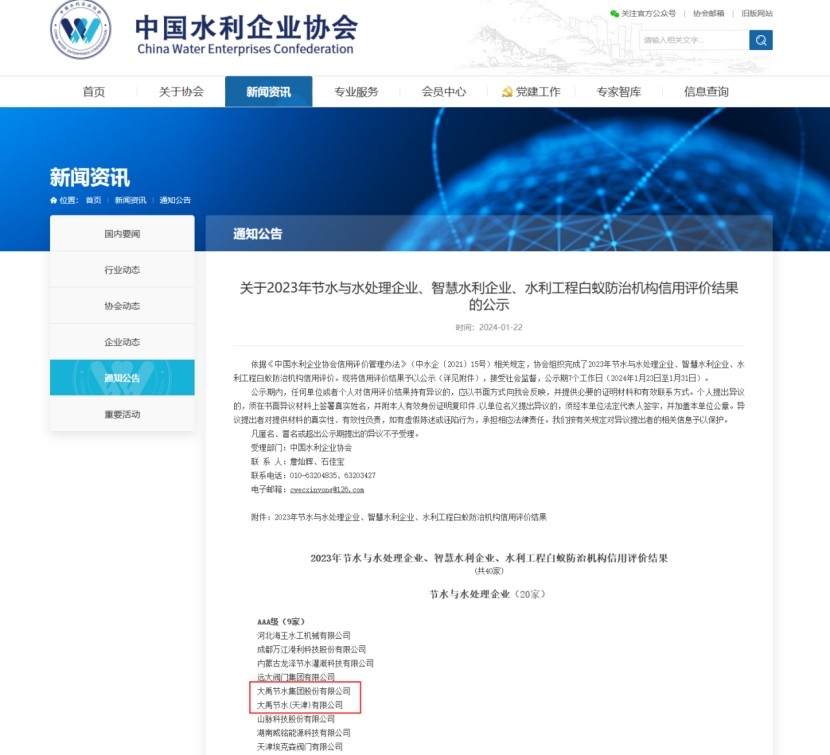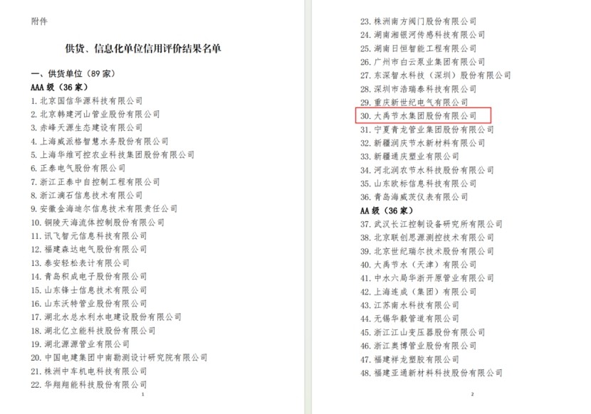 获得最高信用评价等级,充分体现了公司在供货、信息化、施工、节水与水处理领域的综合实力,是企业获得更多的融资、投标、政策争取等商业的“绿色通道”,是企业信用价值的“身份证”,是企业提升品牌价值与品牌竞争力宝贵的无形财产,为公司开拓市场奠定了良好的基础。
