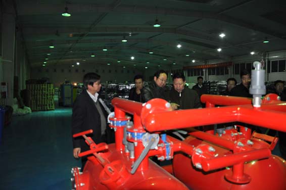 在集团公司董事长王栋等公司高管的陪同下,王文学总经理一行先后参观了天津公司滴灌1、滴灌2、PVC车间以及公司职工宿舍和办公大楼。在各生产车间,王总经理一行现场对公司生产的各类高效节水灌溉产品工艺及流程进行了详细了解,并不时与集团公司董事长王栋等领导交流,询问现代化高效灌溉及灌溉产品方面的问题。参观团一行在天津公司规划图前良久驻足,认真听取集团公司董事长王栋关于大禹公司宏伟蓝图的详细介绍。天津公司作为大禹的窗口、未来的总部,业务范围辐射华北,覆盖东北,市场潜力巨大。王学文总经理及参观团一行对大禹公司生产的各类高效节水灌溉产品表示高度的肯定,并对公司的发展速度以及公司领导的战略眼光表示钦佩。