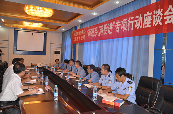与大禹节水集团总裁谢永生,党委副书记王宏发,财务总监李福武、副总裁仇玲、王建斌在座谈会上深入交流