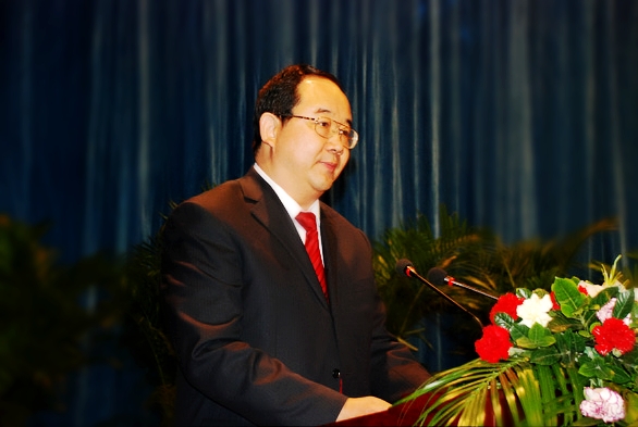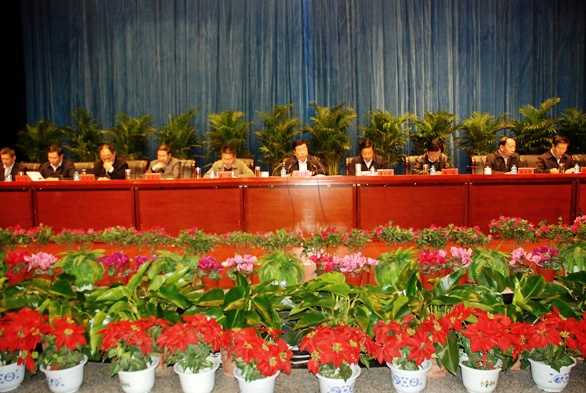 酒泉市市委书记马光明,市委副书记、市长康军等在酒市委常委在主席台就做