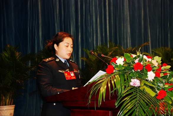 党的十八大代表晁亚玲正在传达十八大会议精神
