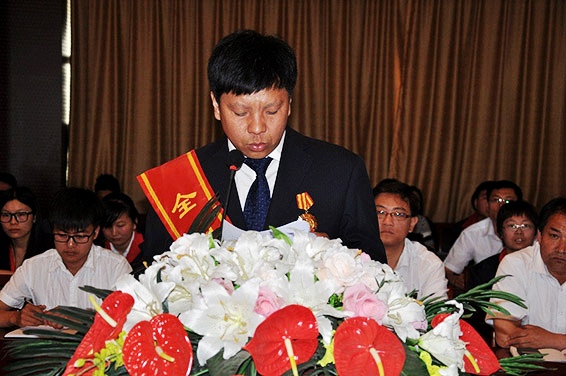 集团公司党委书记、董事长王栋向大禹节水集团全体员工发出《关于向全国劳动模范于文德同志学习的倡议书》并作总结发言