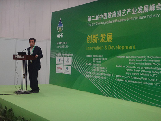 天津市大禹节水灌溉技术研究院院长成自勇参加了期间举行的第二届中国设施园艺产业发展峰会、并作了《地下滴灌及压力补偿技术产品、模式研究与应用》的主题演讲
