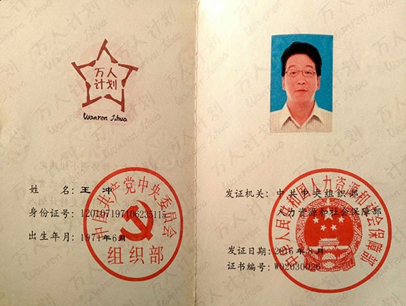 近日,中组部和人社部为入选国家"万人计划"专家颁发了"国家高层次人才特殊支持计划领军人才"入选证书。大禹节水集团公司党委书记、大禹节水(天津)有限公司董事长王冲做为入选国家"万人计划"科技创业领军人才获颁入选证书。