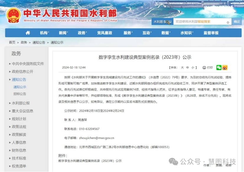 瑞雪兆丰年,龙年好运至。日前,水利部发布“数字孪生水利建设典型案例名录(2023年)公示”,清华大学、宁夏水利信息中心与大禹慧图科技集团联合参建的课题项目“水联网全渠道算法模型在宁夏秦汉渠灌域实现百万亩级应用示范”入选水利部数字孪生水利建设典型案例名录,被评为典型案例。