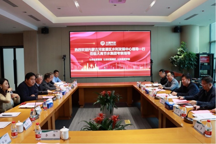 3月4日,内蒙古河套灌区水利发展中心党组书记李根东、总工程师苏小飞等领导一行赴大禹节水集团北京研发中心调研座谈。大禹节水集团董事长王浩宇,集团首席科学家、研究院院长高占义,集团高级副总裁、农水集团总裁兼国际事业部总经理崔静,集团副总裁兼总规划师、农水集团常务副总裁高宏等陪同调研。双方就内蒙古河套灌区全面推进引黄滴灌工程的建议方案进行了深入研讨,为下一步工作的开展奠定了基础。