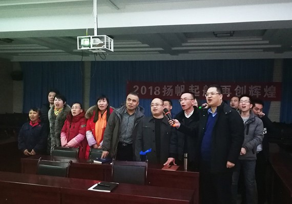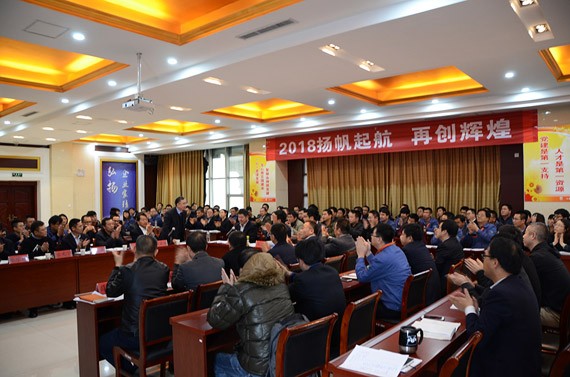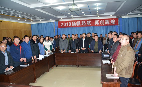 会议最后,与会的千名干部职工全体起立,齐声高喊"2018扬帆起航 再创辉煌"会议主题,回声响彻会场,会议取得圆满成功。