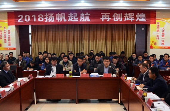 大会的主题是:2018扬帆起航  再创辉煌,集团公司总裁谢永生主持大会。