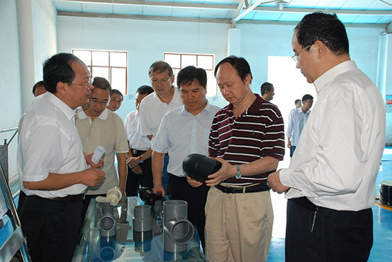 甘肃省科技厅副厅长朱晓力一行在大禹节水酒泉公司管件车间调研