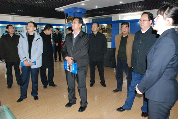 项目验收专家组一行在集团公司董事长王栋陪同下在公司展厅参观考察