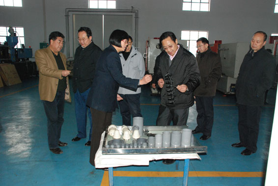 项目验收专家组一行在集团公司董事长王栋、酒泉公司总经理刘伟芳的陪同下在公司管件车间参观考察