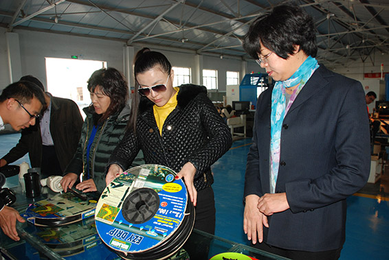 王诗沂大使在大禹节水酒泉公司滴灌车间了解滴灌管(带)生产工艺