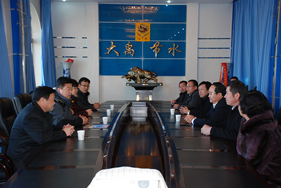 董事长王栋对肃州区委副书记、区长杨金泉一行到来表示热烈欢迎,对区委、区政府的关怀和问候表示深情的感谢,并就近年来大禹节水集团发展情况及未来计划进行了简要汇报介绍。王栋表示,近年来,在酒泉市委、市政府及肃州区委、区政府等各级政府关心关怀下,大禹节水集团取得了稳健的发展,过去的一年里,集团先后完成了陕西公司、广西公司的建成投产,同时联合竞购了杭州市水利水电勘测设计院,长春公司也正在积极的建设当中,基本已经完成大区域战略布局;未来几年,大禹节水集团将重点投资和发展水利水电信息化、水利水电勘测及农田水利设计等知识密集型、高端型产业。