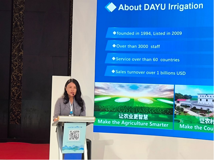 在演讲中,王浩宇分享了在中国政府精心指导和有力推动下,中国节水产业从无到有的发展历程,以及在此背景下大禹节水创立及发展的情况。在近30年的耕耘中,大禹节水总结提炼了一批可在全球复制、推广的先进机制模式和典型案例,打造了集项目投资、建设交付、运营管护、数字化、智能化为一体的全生命周期解决方案,大禹节水已具备为国际客户提供一体化专属定制方案的能力。立足本土,着眼全球,大禹的脚步不曾停歇,目前已在中亚、中东等地成立了分支机构,希望以在中国成功的节水实践为基础,帮助更多的国家和地区实现节水增粮的目标,为我们共同的地球创造一个可持续发展的美好未来。