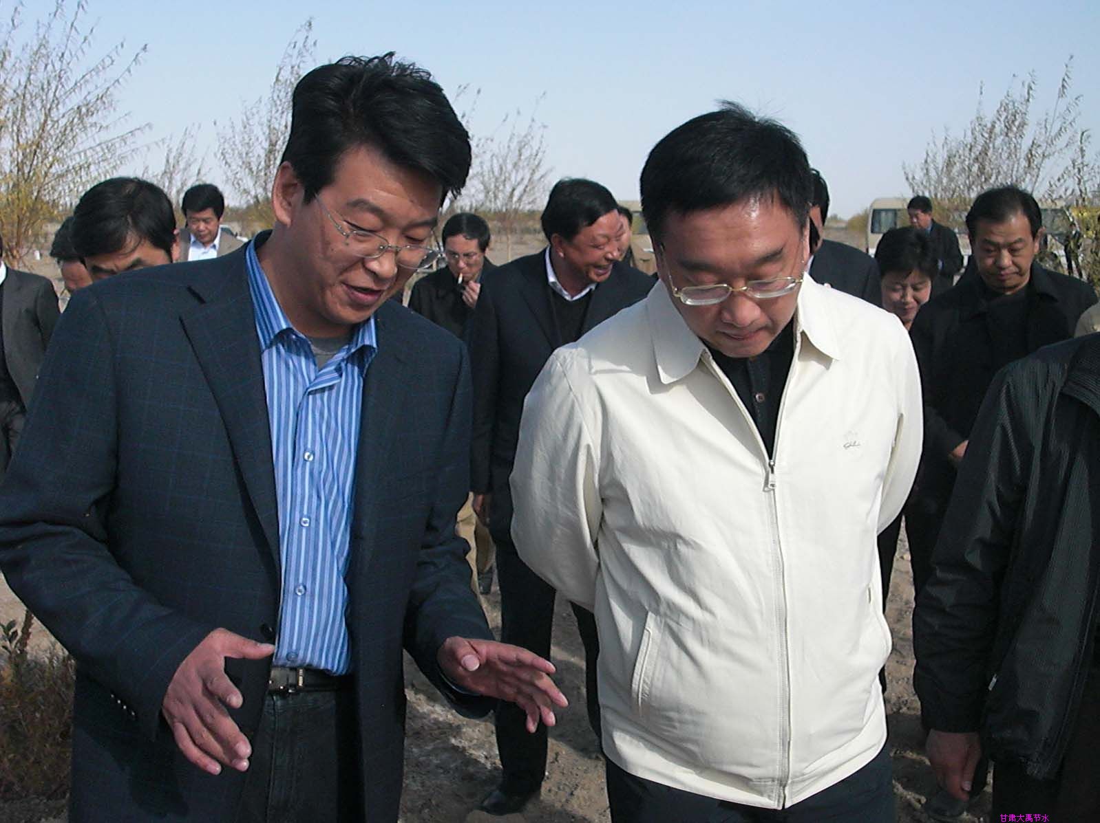 陈雷相继考察了大禹公司在民勤县三干灌区、凉州区西营灌区渠首、四干渠工程建设现场、怀安乡驿城村七组、党河水库、南台堡村滴灌林和莫高窟风沙治理情况,现场了解敦煌市40万亩河水自压式滴灌规划。