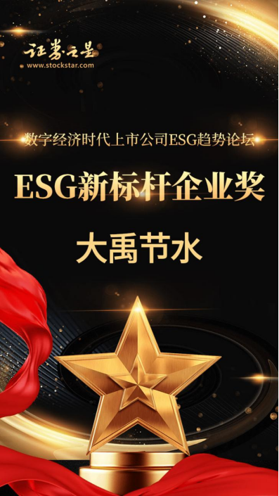 近日,由杭州市西湖区商务局(金融办)、西湖区投资促进局、西湖区古荡街道办事处联合证券之星举办的“数字经济时代上市公司ESG趋势论坛”圆满收官。在本次论坛中,大禹节水凭借在ESG领域的出色表现,荣获“证券之星ESG新标杆企业奖”奖项。