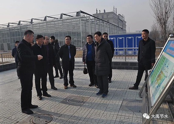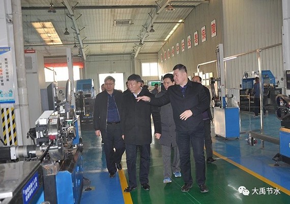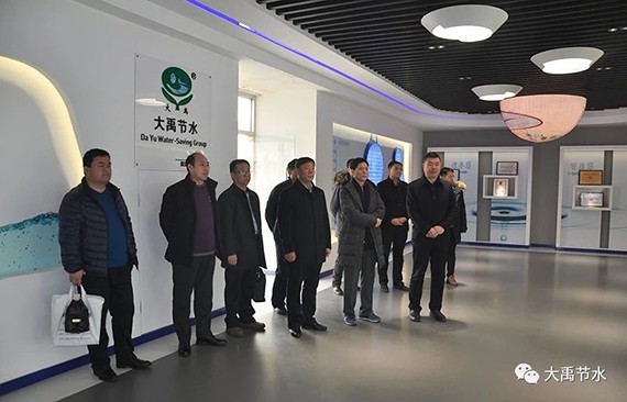 1月18日,沙河市副市长苗全生、邢台市水务局副局长宋志伟、邢台市水务局农水科科长冯涛、沙河市水务局局长朱如森、副局长申建刚一行莅临大禹节水集团考察并洽谈合作。集团公司董事长王浩宇、总裁谢永生、天津公司副董事长张学双、天津公司副总经理张永军等陪同考察并座谈。