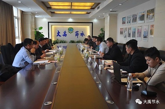 现场考察结束后,双方进行了座谈交流。集团公司董事长王浩宇对邢台市领导一行莅临大禹节水集团考察表示热烈欢迎。王浩宇董事长就公司基本情况及公司业务发展情况进行了介绍,重点介绍了公司在“三农三水”方面取得的成绩及PPP项目模式在全国的推广建设情况。并邀请水科院莫彦博士对河北省沙河市朱庄南灌区的项目背景、规划的指导思想与原则、灌区规划思路与目标、规划建设布局与任务等四个方面做介绍。王浩宇表示,大禹节水集团以农和水为中心,形成了以“农业高效节水、农民安全饮水、农村污水处理”的产业格局,实现了全产业链覆盖并取得了良好的社会效应。大禹节水集团愿从勘察、设计、施工等各个方面参与到沙河市朱庄灌区项目,充分发挥自身优势,为使农业更智慧、农村更美好、农民更幸福做出应有的贡献。
