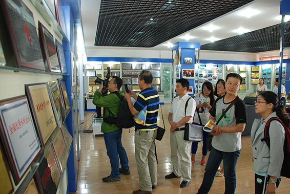 优秀“两新”采访团媒体记者在大禹节水集团展厅参观