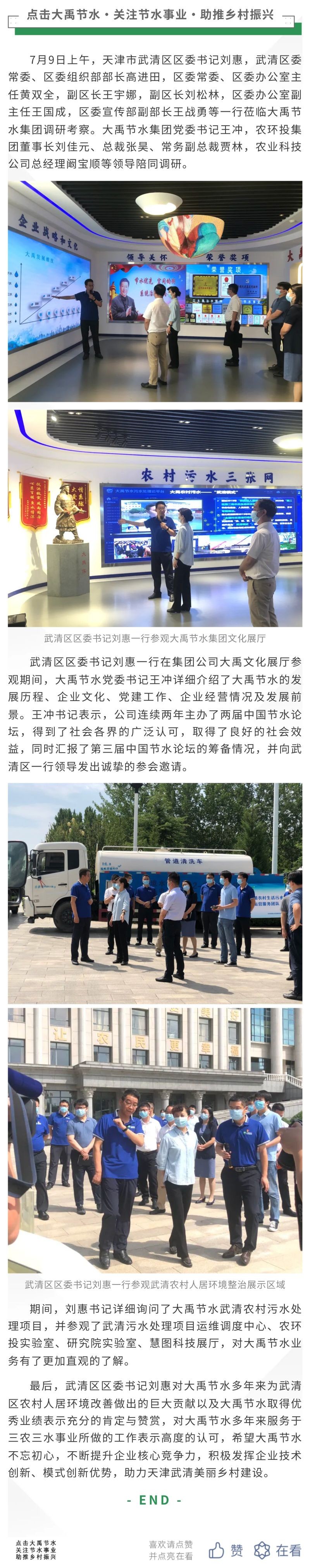 大禹动态| 天津市武清区区委书记刘惠一行莅临大禹节水集团参观考察