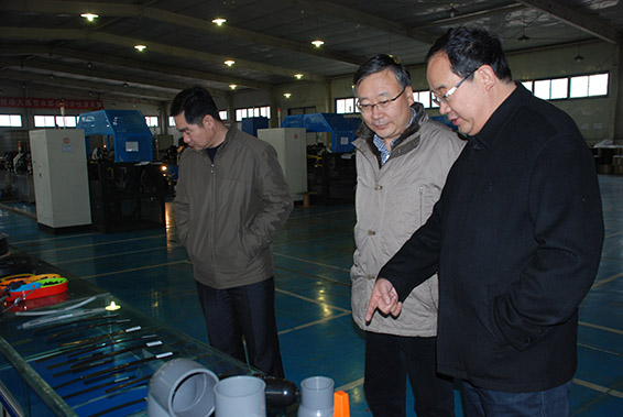 甘肃省工信委装备制造处处长王海峰一行在大禹节水酒泉公司管件车间调研