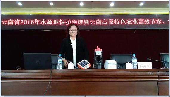 云南大禹智慧水务科技有限公司受邀参加会议并作技术与产品推介交流,公司总经理刘美红在推介会现场演示了公司自主研发、全国首创的高效节水"光伏云智能控制器",产品受到与会代表的高度关注。