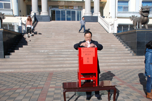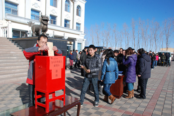 12月26日上午,酒泉,大禹节水集团组织开展了捐款献爱心活动