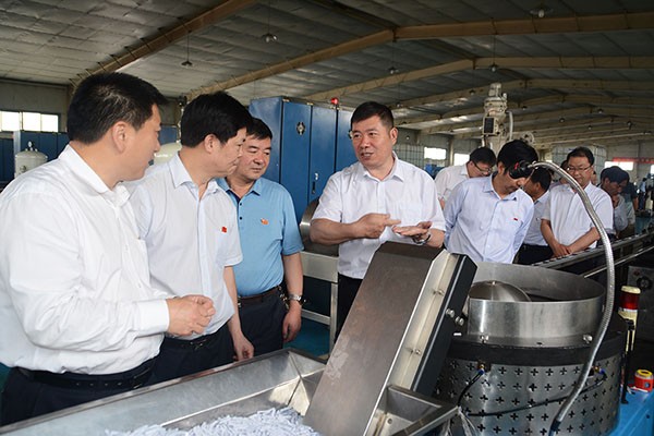 随后,调研组一行深入公司滴灌车间生产一线,实地调研了公司生产经营与产品研发等相关情况,并现场查看了酒泉公司党员"三岗联创"与"一卡双制"管理看板,集团公司总裁谢永生一一进行了介绍和解答。调研组充分肯定了大禹节水集团在非公党建方面的各项工作,并高度评价了公司自主研发生产的各类现代化高效节水灌溉产品生产工艺以及新产品研发与创新等能力。同时希望大禹节水集团在发展过程中,继续以党建为抓手,进一步提升公司党建与生产经营水平,争当非公经济党建排头兵,不断促进企业健康持续发展。