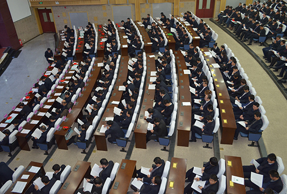 大会在庄严的国歌中拉开帷幕,会议由集团公司副董事长王冲同志主持。主要议程有:听取集团公司董事长王栋同志代表公司董事会做关于2012年工作总结及2013年工作计划报告;签订2013年度生产经营目标责任书;表彰2012年度先进集体与先进个人;酒泉市领导做重要指示等。