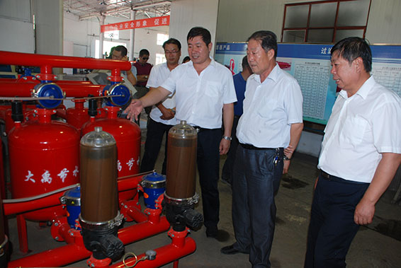 宁夏自治区水利厅副厅长毕廷和一行在公司展厅了解施肥过滤系统模型
