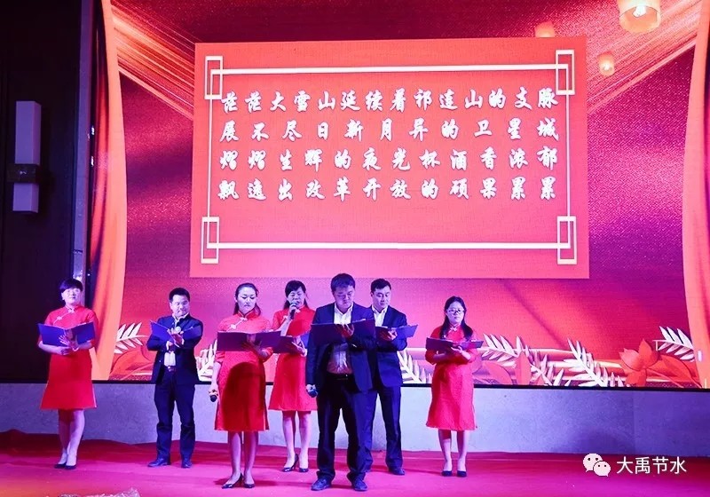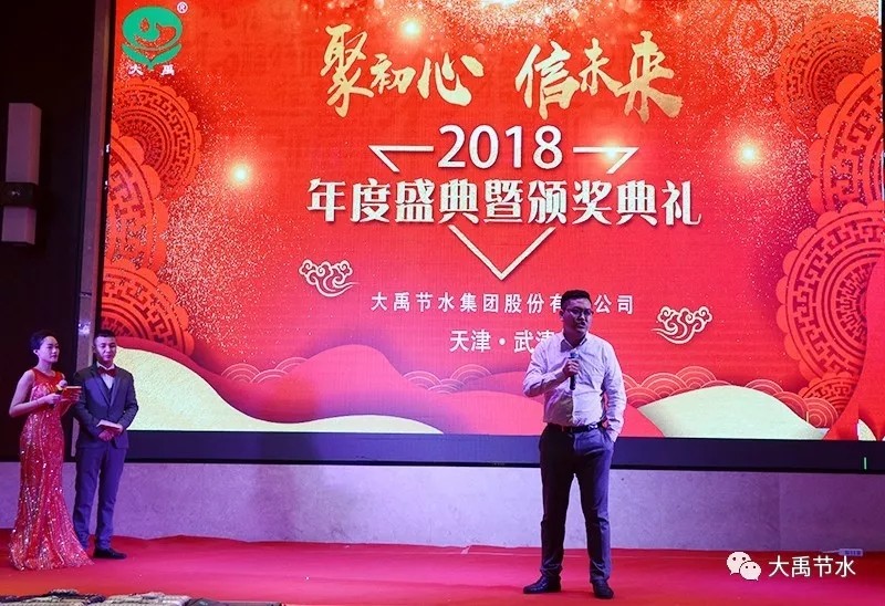 1月30日晚,大禹节水集团隆重表彰奖励2018年度先进个人。大禹节水集团全体高管,各子分公司董事长、总经理、2018年度先进集体和先进个人获奖代表及部分员工及家属亲友300余人欢聚一堂,共同见证属于英雄的荣誉,共同分享前进的经验。公司其他员工通过钉钉直播分享了这一荣耀的时刻。