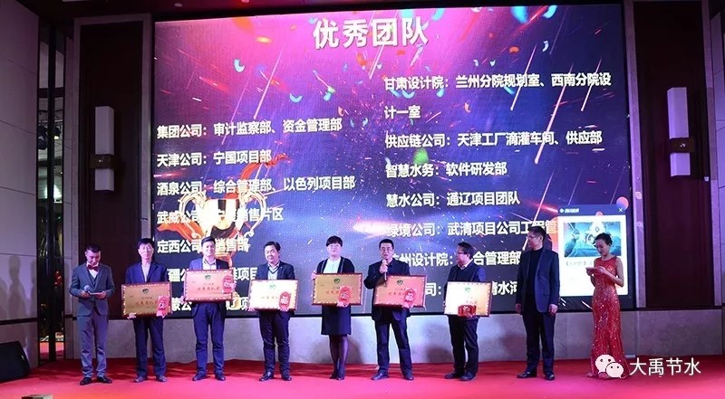 评选先进、表彰优秀,是大禹节水集团每年年末岁初的盛事,它既是对集团过去一年骄人战绩的集中展示和总结回顾;更是对新一年再创辉煌的思想动员和战前准备。2018年全体大禹人克服困难、不懈努力,销售订单及利润等各项任务顺利完成,公司质量品牌影响力得到显著提升,各项工作取得了长足发展。为了褒奖在过去一年中做出突出贡献的先进集体和个人,集团公司设立了先进集体、优秀团队、优秀项目经理、杰出项目经理、优秀员工、优秀基层管理者、销售明星团队奖、销售冠亚季军团队奖、特殊贡献等十余个奖项,重点奖励为大禹做出突出贡献的优秀员工和先进团队。